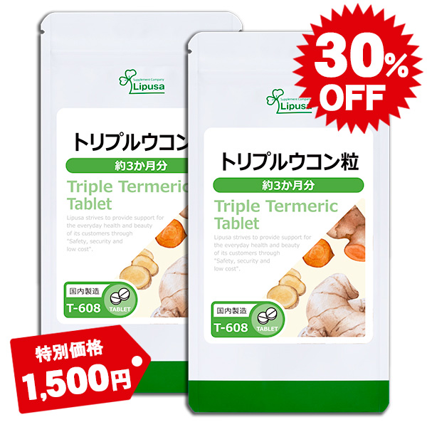 ぽっきりセール トリプルウコン粒 約3か月分×2袋 T-608-2 (360粒×2袋) 送料無料 健康 クルクミン ミネラル ぽっこり サプリ リプサ Lipusa 公式 agesugi_sbe
