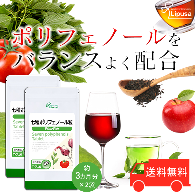 七種ポリフェノール粒 約3か月分×2袋 T-710-2 (360粒×2袋) 送料無料 健康維持 エイジングケア サプリ リプサ Lipusa 公式 agesugi_sbe
