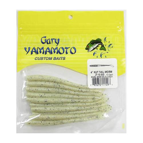 ゲーリーヤマモト ワーム 4インチ カットテールワーム 303(パールホワイト/ゴールド&ブラックフレーク)【ゆうパケット】