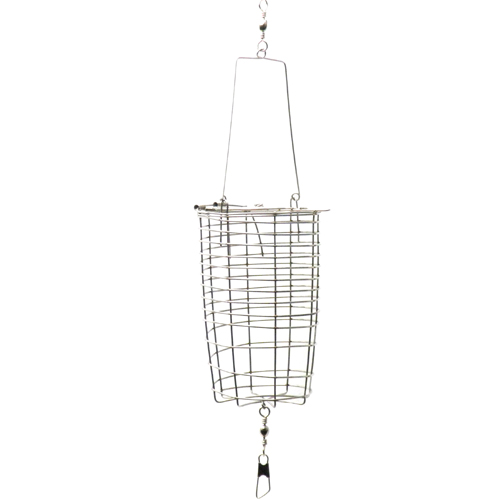 底に向かって荒目編みしたオキアミ用ステンカゴ。[09RE05100]