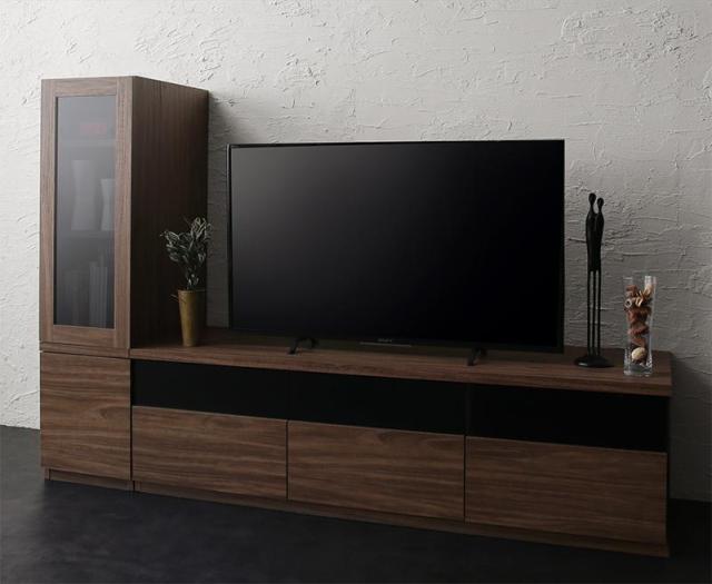 キャビネットが選べるテレビボードシリーズ 〔add9〕アドナイン 2点セット(テレビボードW140+キャビネット) ガラス扉 ウォルナットブラウン 【北海道・沖縄・離島配送不可】