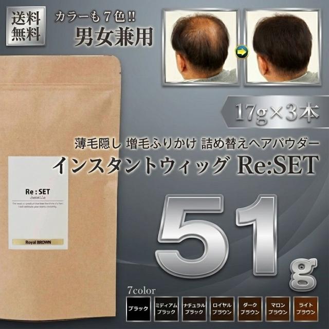 薄毛隠し パウダー 増毛 ふりかけパウダー 薄毛 女性 男性 兼用 詰め替え ヘアパウダー インスタントウィッグ Re:SET リセット 51g