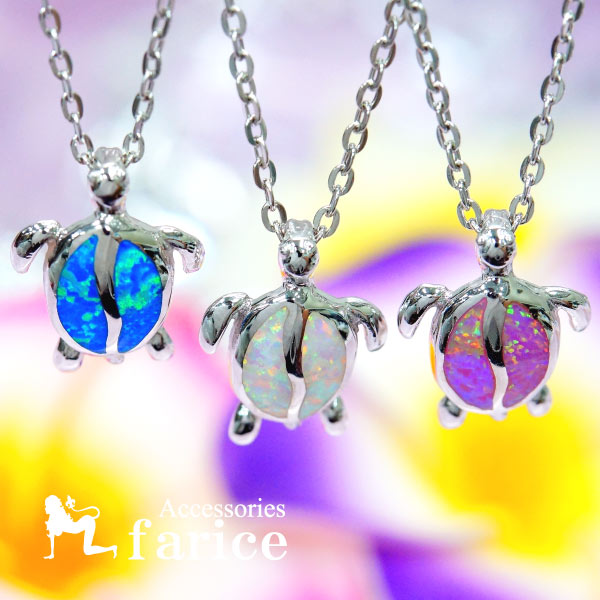ハワイアンジュエリー オパール カメ ウミガメ レディース シルバー925 ペンダント ネックレス 【ブルー/ピンク/ホワイト】