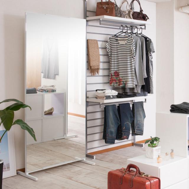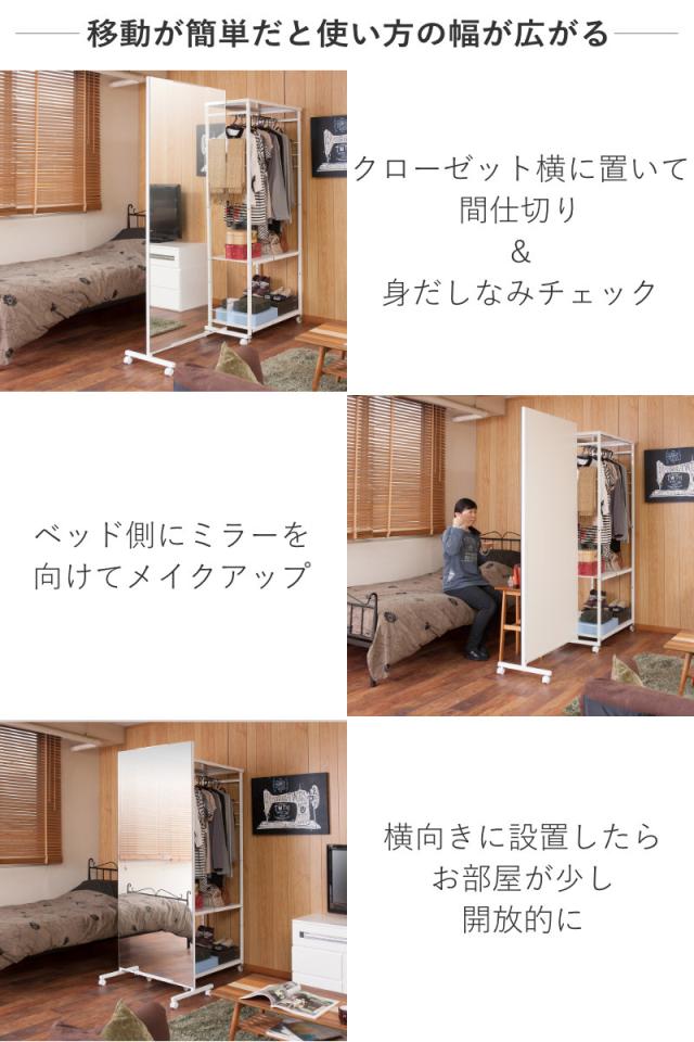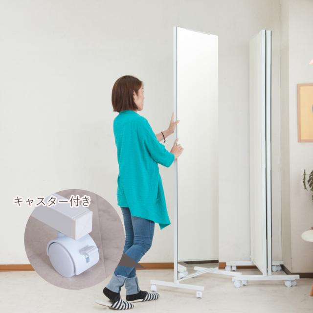 パーテーション 間仕切り スタンドミラー 大型 キャスター付き 幅80cm ( ミラー 全身鏡 鏡 衝立 全身ミラー かがみ 姿見 移動 連結 収納 ダンス レッスン 自立式 パーティション )
