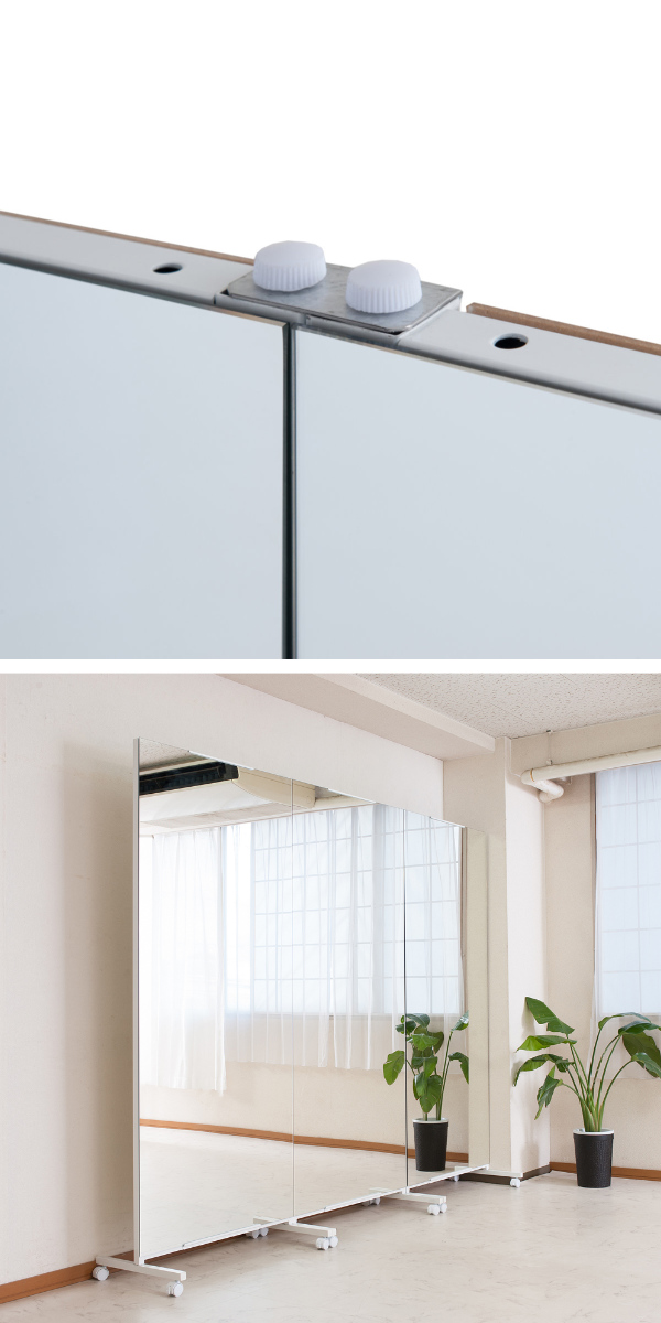 ミラーは上部で連結できます。並べて使えば自宅が簡単にレッスンスタジオに早変わりします。ダンスやバレエなどの習い事の練習も自宅で手軽に出来ます。
