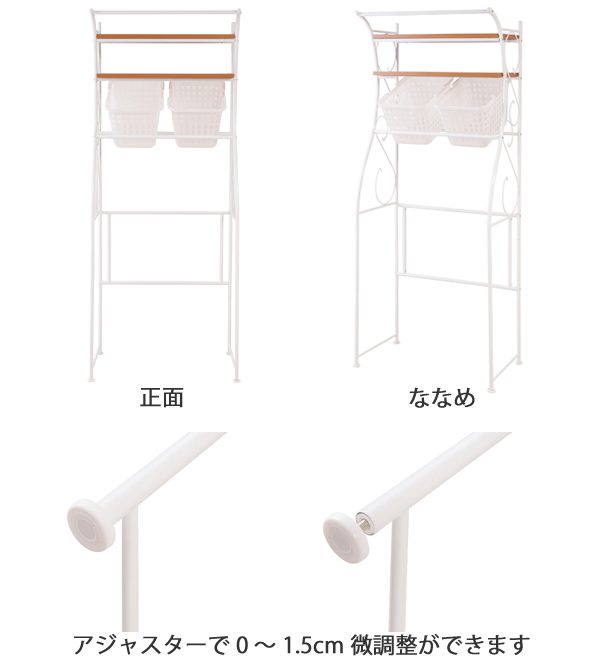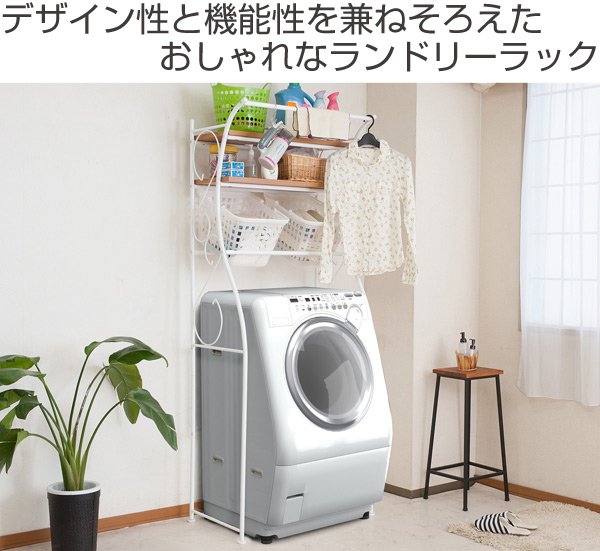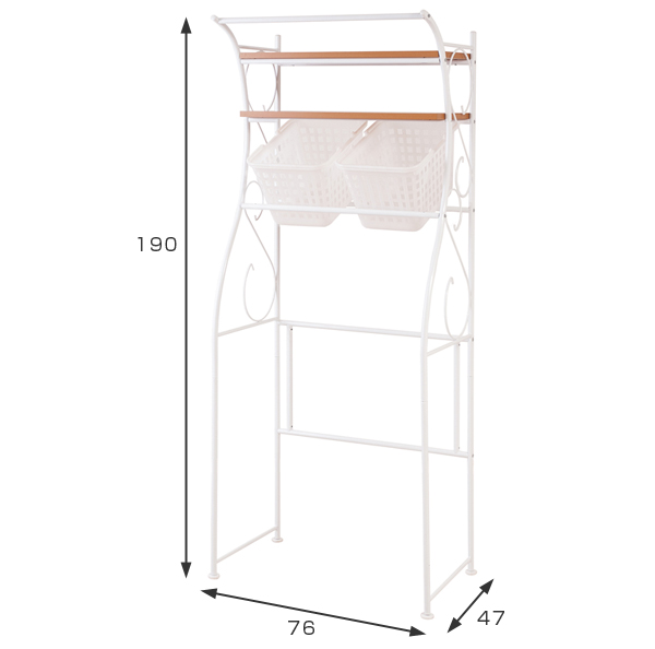 ランドリーラック 棚2段 カントリー調 アーチデザイン バスケット2個付き 幅76cm ( 洗濯機 ラック ランドリー 収納 ランドリー収納 洗面所 棚 カゴ付き ナチュラル ホワイト かわいい おしゃれ 洗濯物 カゴ 洗濯かご )