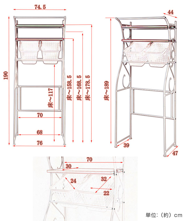 付属品:ランドリーカゴ2個、棚板2枚