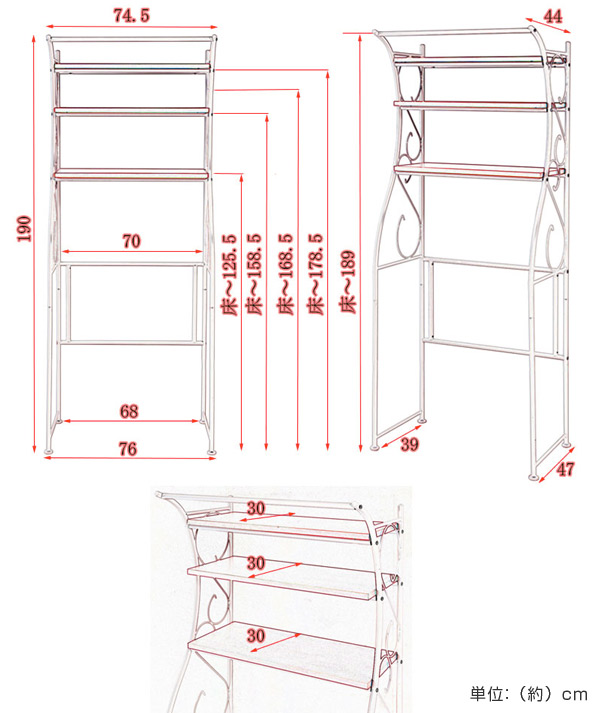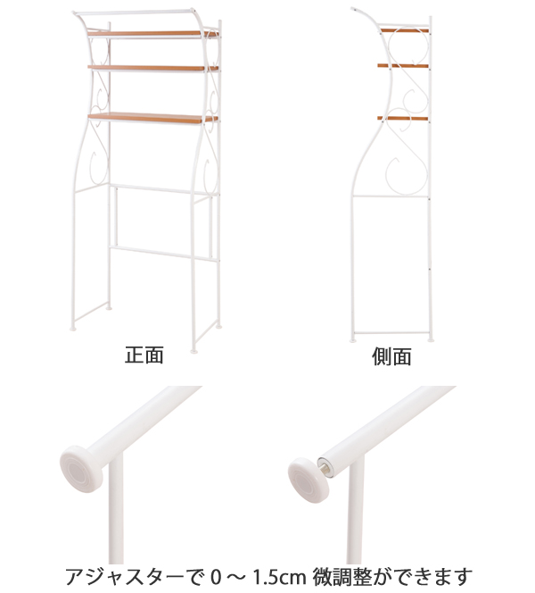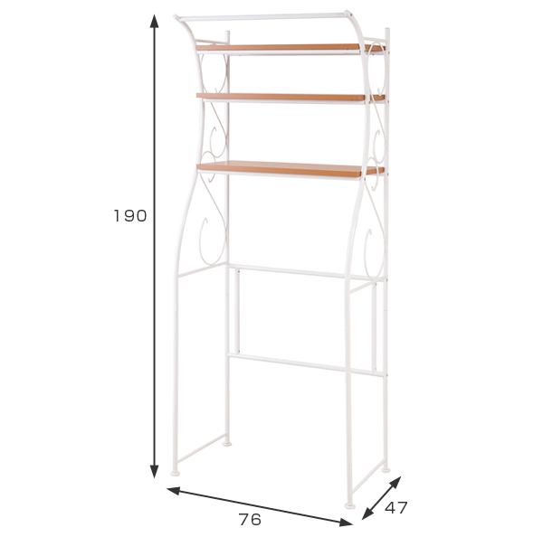 ランドリーラック 棚3段 アーチデザイン カントリー調 幅76cm ( 洗濯機 ラック ランドリー 収納 ランドリー収納 洗面所 棚 ホワイト ナチュラル かわいい おしゃれ 洗濯物 洗濯機ラック シェルフ )
