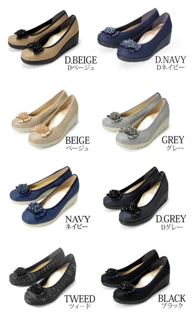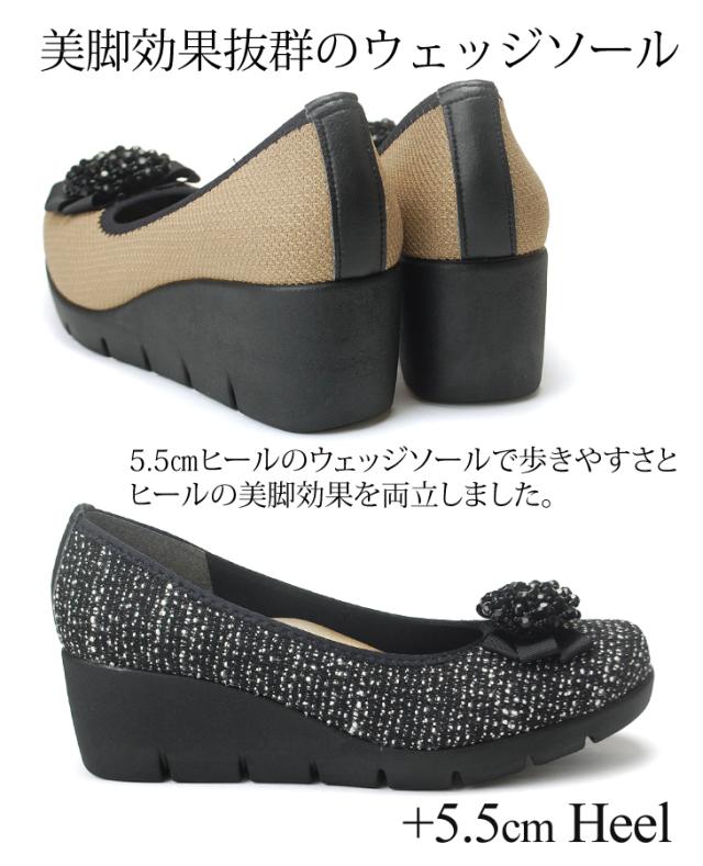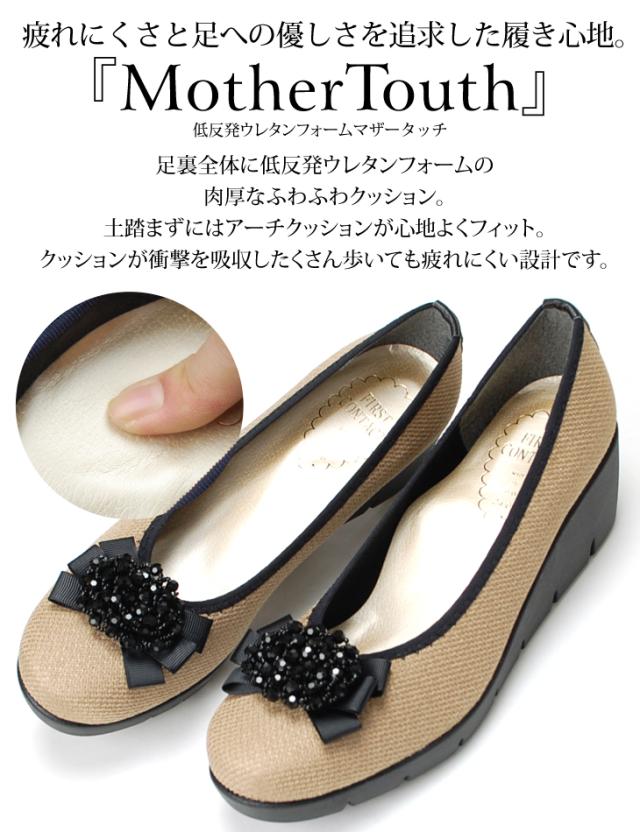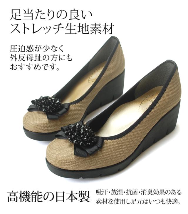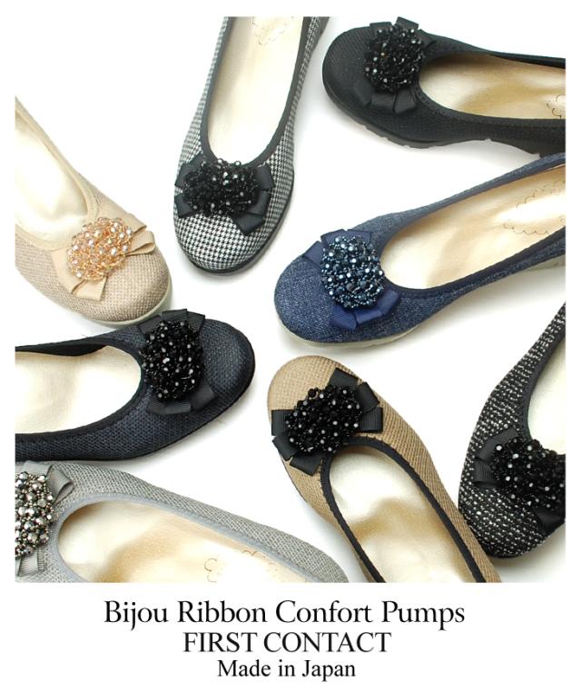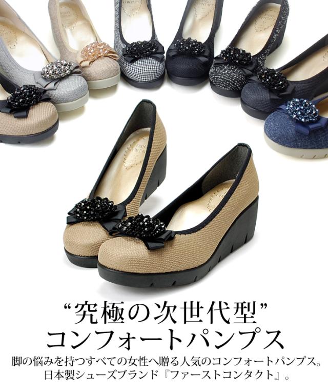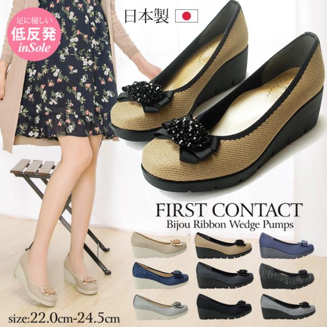 ファーストコンタクト パンプス 痛くない 疲れない 歩きやすい ウェッジソール ビジュー リボン 外反母趾 通勤 仕事 靴 日本製