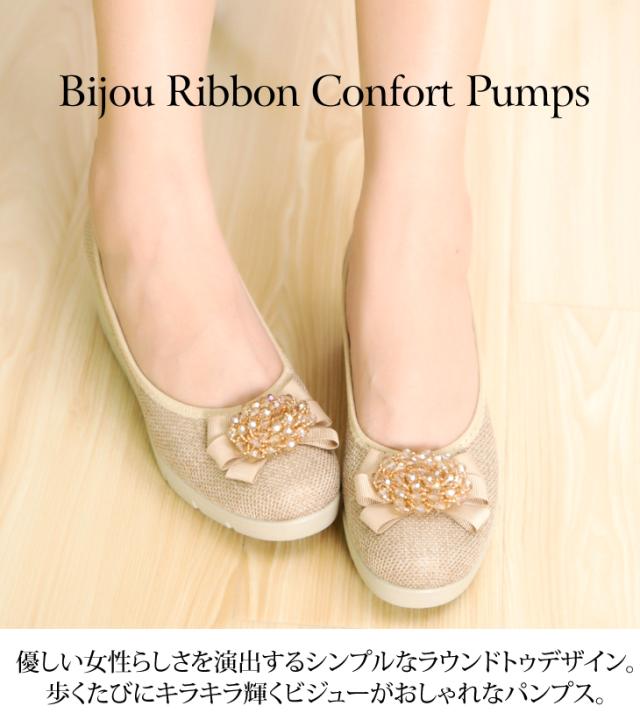 ビジューリボン&履きやすさ抜群の5.5cmヒールで大好評!