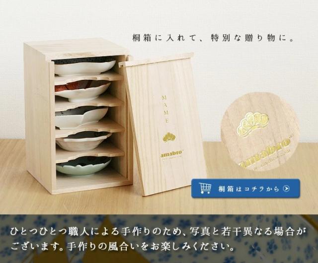 ■備考…MAME(豆皿)が5個収納出来る桐箱です。結婚式の引き出物や、結婚の祝いなどのパッケージにオススメ。こちらの商品はMAME(豆皿)の桐箱のみの販売となります。MAME本体は別売りですので、合わせてご購入ください。