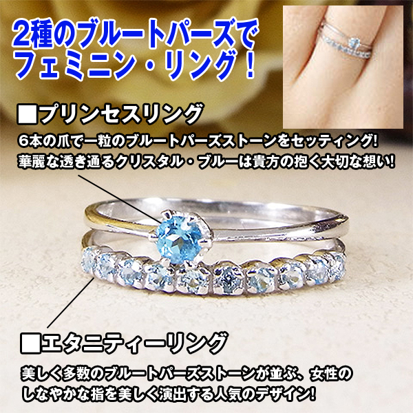 誓いのブルートパーズツインリング (レディース,パワーストーン,エタニティー,プリンセス,シンデレラ,愛,プレゼント)