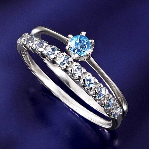 美しく多数のブルートパーズストーンが並ぶ、女性のしなやかな指を美しく演出する人気のデザイン!
