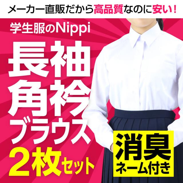 長袖 女子 学生角衿ブラウス 白 左胸ポケット 2枚セット | 制服 女子 女 スクール ブラウス 角襟 中学生 高校生 A体 B体 抗菌防臭 レディース