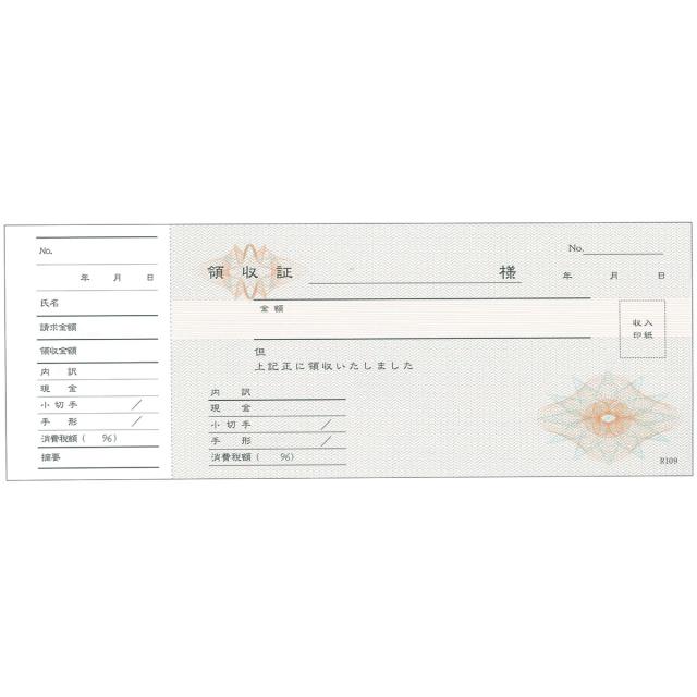 領収書 小切手判 単式 控え付 R-109 50枚×5冊入