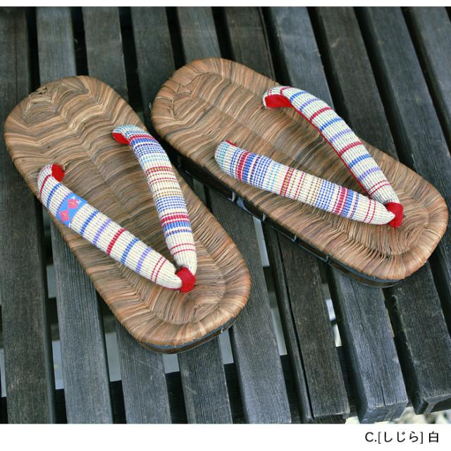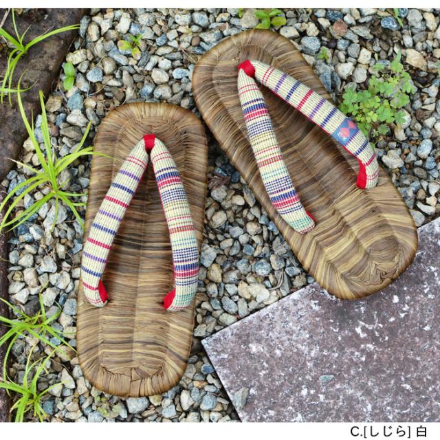 竹皮を染めたカラス表はシックで高級感があり、鼻緒が白無地の竹皮表は神社仏閣様にもおすすめです。
