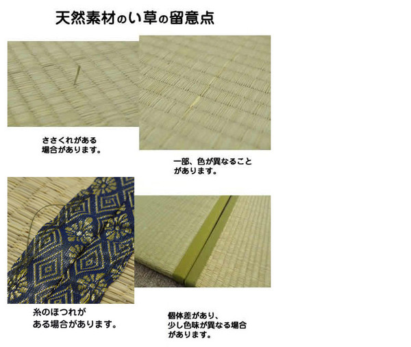 ※天然素材のい草の留意点:個体差によって、ささくれがあったり一部色が異なる場合等がございます。