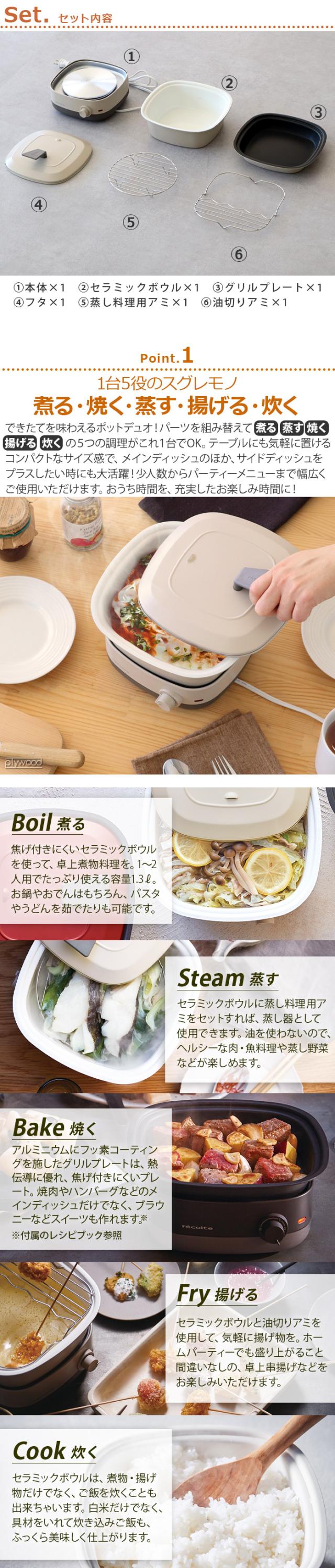 レコルトより、卓上マルチクッカー「ポットデュオ キャレ」の登場です。