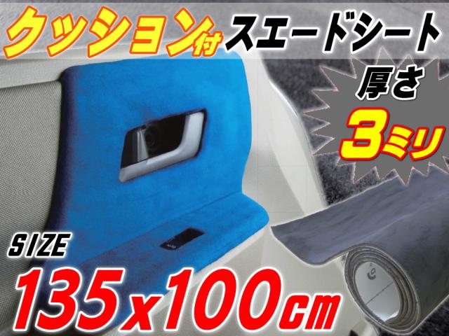 クッション付きスエードシート (大) ダークグレー 幅135cm×1m ウレタン スポンジ スエード生地 糊付き アルカンターラ調 濃灰 カッティング可 起毛 粘着 曲面 インテリア ウォールクロス 天張り 天井 内装 ステッカー バックスキンルック スウェード シール ヌバック