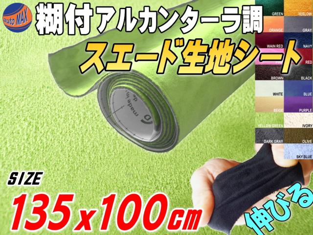 スエード (大) 黄緑 【宅急便 送料無料】 幅135cm×1m 伸びる スエード生地シート 糊付き アルカンターラ調 ライトグリーン スエードシート バックスキンルック 曲面対応 カッティング可 内装 インテリア ウォールクロス壁紙 天井 張替 シール ステッカー スウェード 100cm