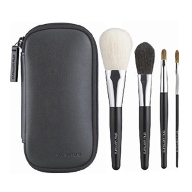 メイクアップの仕上げに必要なベーシックな4本が揃えられた、携帯に便利なサイズのブラシセット。