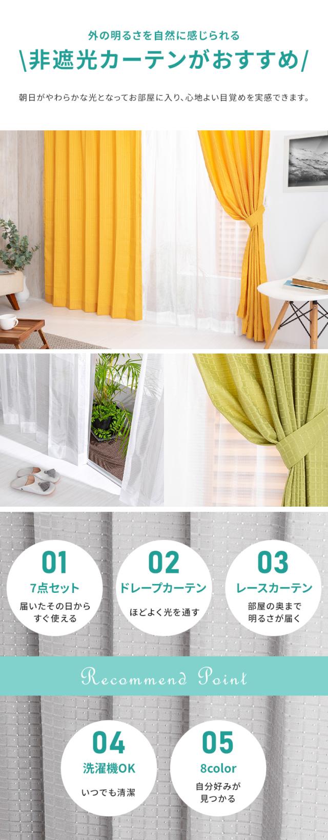 - 非遮光カーテンでカラーも色々とあり いつも購入してます。 今回はアイボリーの135センチにしました。 キレイな色合いで良かったです! お安く購入出来るので助かります! またお願いします。
