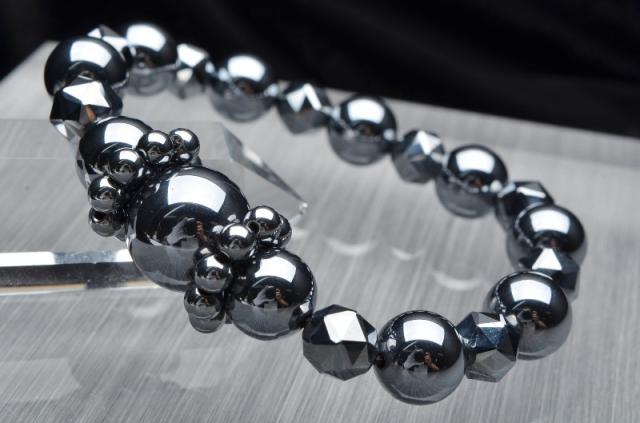 | 特徴・意味 | 10mmのスターカットと7.5mmのラウンドが交互になり、真ん中に大きな14mm珠が入ったブレスレットです。 テラヘルツ波とは、1秒間に1兆回の周波数を放ち、人体や物質に様々な影響を与えると言われている波長です。 テラヘルツ波エネルギーは、細胞を活性化させるといわれており、健康を維持したり、老化を遅らせたりすると言われています。 |