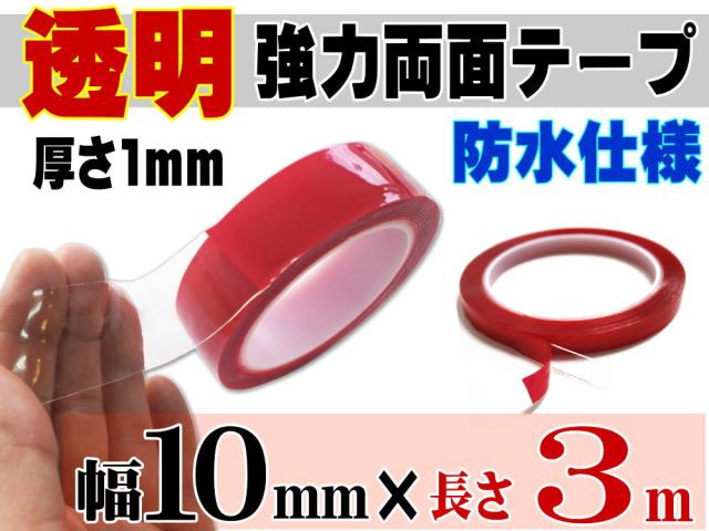 透明 両面テープ (10mm) 3m 【商品一覧】幅1cm 長さ300cm 超強力 クリアタイプ 厚手1mm 防水仕様 外装 内装 自動車パーツ ガラス 等に スコッチ 3M社 スリーエム社 製と同等の粘着力 多用途 アクリルフォームテープ 曲面対応 DIY 高透明 車用 バイク用 幅広 幅狭 剥がせる