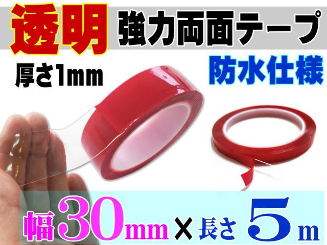 透明 両面テープ (30mm) 5m 【商品一覧】幅3cm 長さ500cm 超強力 クリアタイプ 厚手1mm 防水仕様 外装 内装 自動車パーツ ガラス 等に スコッチ 3M社 スリーエム社 製と同等の粘着力 多用途 アクリルフォームテープ 曲面対応 DIY 高透明 車用 バイク用 幅広 幅狭 剥がせる