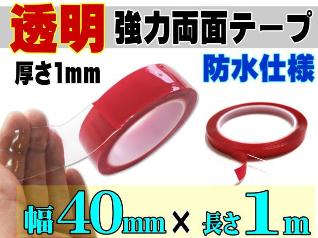透明 両面テープ (40mm) 1m 【商品一覧】幅4cm 長さ100cm 超強力 クリアタイプ 厚手1mm 防水仕様 外装 内装 自動車パーツ ガラス 等に スコッチ 3M社 スリーエム社 製と同等の粘着力 多用途 アクリルフォームテープ 曲面対応 DIY 高透明 車用 バイク用 幅広 幅狭 剥がせる