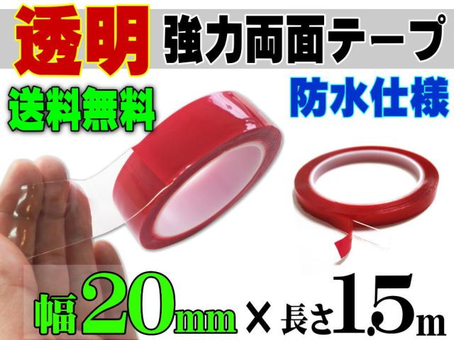 透明 両面テープ (20mm) 1.5m 【メール便 送料無料】幅2cm 長さ150cm 超強力 クリアタイプ 厚手1mm 防水仕様 外装 内装 自動車パーツ ガラス 等に スコッチ 3M社 スリーエム社 製と同等の粘着力 多用途 アクリルフォームテープ 曲面対応 DIY 高透明 車用 バイク用 幅広 幅狭