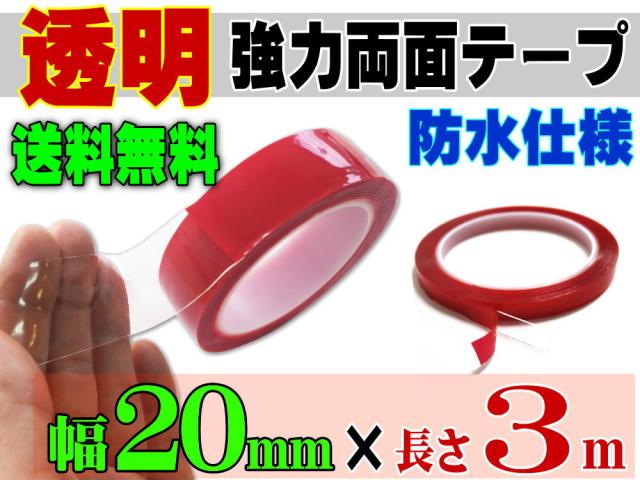 透明 両面テープ (20mm) 3m 【メール便 送料無料】幅2cm 長さ300cm 超強力 クリアタイプ 厚手1mm 防水仕様 外装 内装 自動車パーツ ガラス 等に スコッチ 3M社 スリーエム社 製と同等の粘着力 多用途 アクリルフォームテープ 曲面対応 DIY 高透明 車用 バイク用 幅広 幅狭