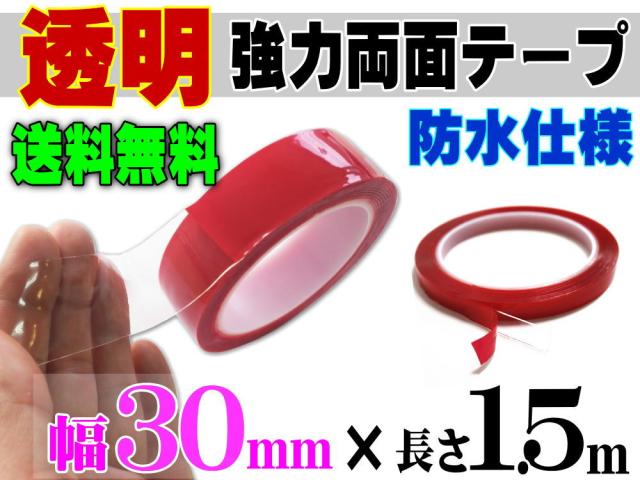 透明 両面テープ (30mm) 1.5m 【宅急便 送料無料】幅3cm 長さ150cm 超強力 クリアタイプ 厚手1mm 防水仕様 外装 内装 自動車パーツ ガラス 等に スコッチ 3M社 スリーエム社 製と同等の粘着力 多用途 アクリルフォームテープ 曲面対応 DIY 高透明 車用 バイク用 幅広 幅狭