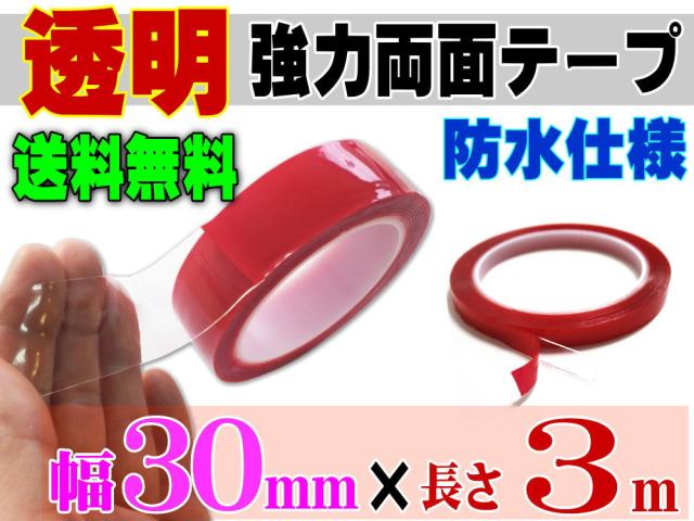 透明 両面テープ (30mm) 3m 【宅急便 送料無料】幅3cm 長さ300cm 超強力 クリアタイプ 厚手1mm 防水仕様 外装 内装 自動車パーツ ガラス 等に スコッチ 3M社 スリーエム社 製と同等の粘着力 多用途 アクリルフォームテープ 曲面対応 DIY 高透明 車用 バイク用 幅広 幅狭