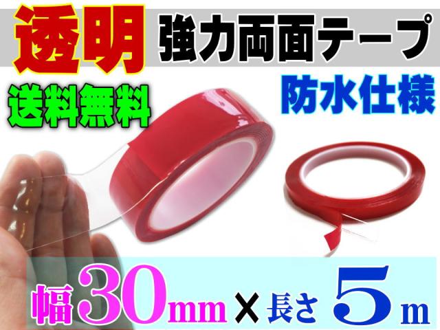 透明 両面テープ (30mm) 5m 【宅急便 送料無料】幅3cm 長さ500cm 超強力 クリアタイプ 厚手1mm 防水仕様 外装 内装 自動車パーツ ガラス 等に スコッチ 3M社 スリーエム社 製と同等の粘着力 多用途 アクリルフォームテープ 曲面対応 DIY 高透明 車用 バイク用 幅広 剥がせる