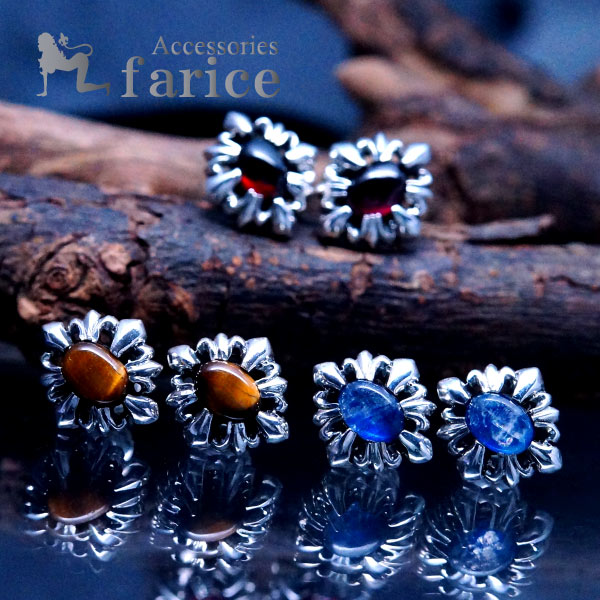 シルバーアクセサリー ピアス ユリの紋章 クロス 十字架 シルバー 天然石【ブルームーンストーン or ガーネット or タイガーアイ】