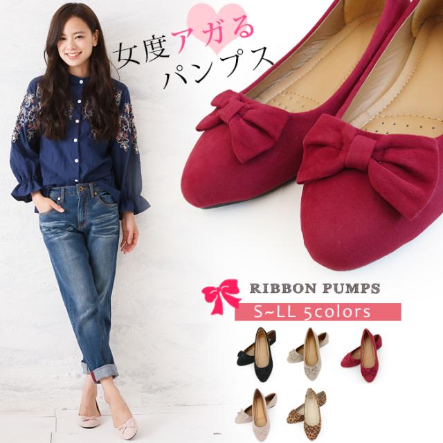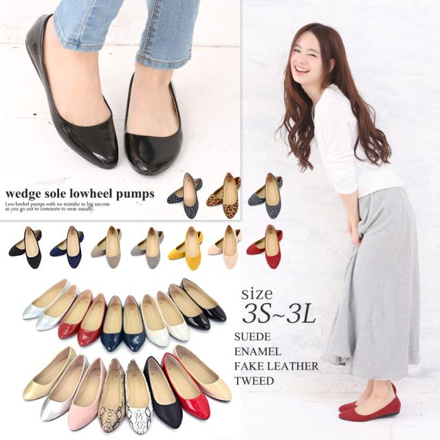 パンプス 痛くない 走れる ぺたんこ リボン ローヒール レディース Lagalt アウトレット パンプス ウェッジソール 小さいサイズ 大きいサイズ ぺたんこ靴 かわいい 歩きやすい スエード (ar-HIRB)[宅配B]【送料無料】