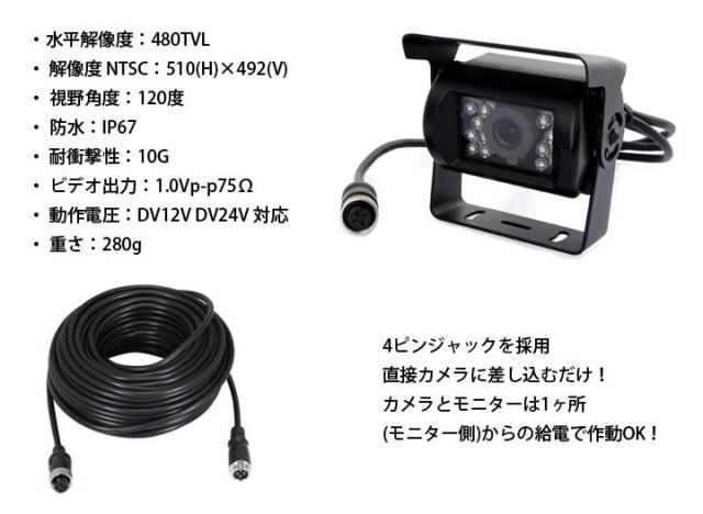 トラック、バス、重機等対応バックカメラセット 12V/24V兼用9インチモニター搭載 防水暗視バックカメラ+一体型 20mケーブル OMT90SETPRO