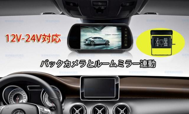 12/24V対応バックカメラセット 重機、バス、トラック 7インチ高輝度ルームミラー 20mケーブル付き 防水赤外線ナイトビジョン LCD700HSET