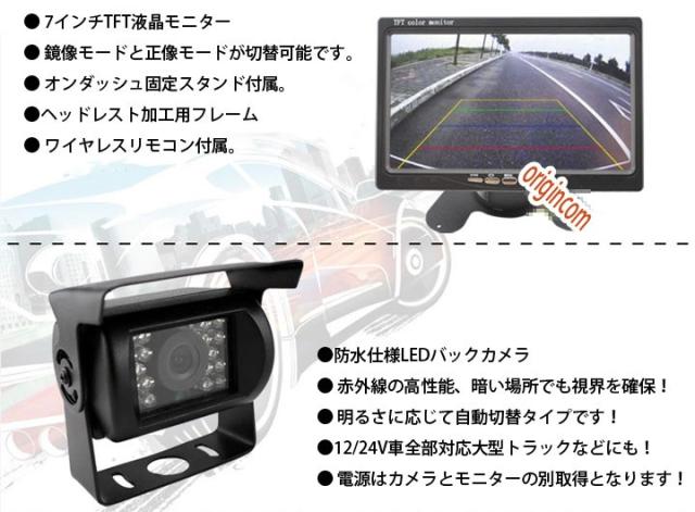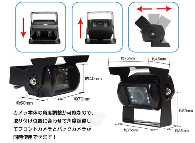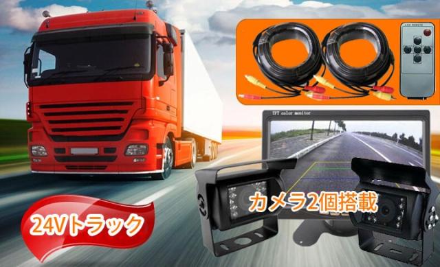 カメラ・モニターセット カメラ2個 12/24V兼用 フロント/バックカメラ同時使用可 7インチモニター 防水暗視カメラ×2 OMT72SET
