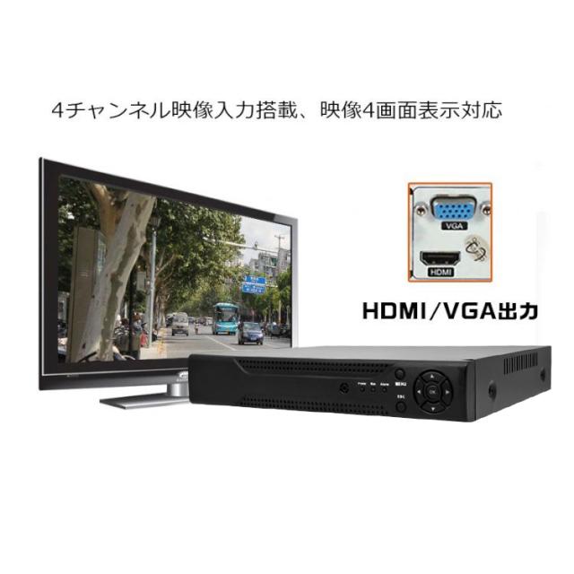 4CHデジタルレコーダー カメラ4台接続・同時録画可能 スマホでどこからでもリアルイム監視、遠隔操作 H.264 VGA/HDMI出力 DVR6404