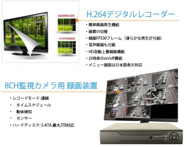 8CHデジタルレコーダー カメラ8台接続・同時録画可能 スマホでどこからでもリアルイム監視、遠隔操作 VGA/HDMI出力 DVR8CHNEW