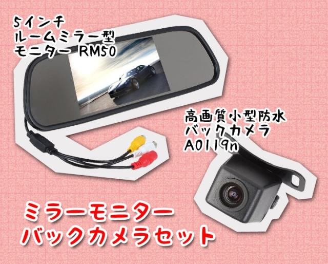 5インチルームミラー型モニター+高画質小型防水バックカメラ お買得セット RM50a0119n