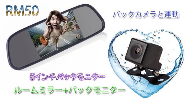 5インチルームミラーモニター 12/24V対応 2映像入力 バックカメラ自動切換 軽量 OMT-RM50