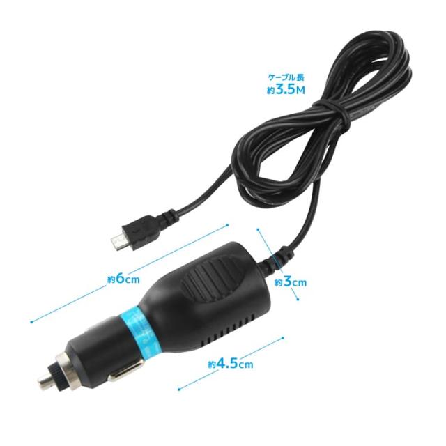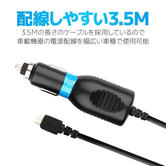 microUSBシガーソケット 入力12V-24V ヒューズ内蔵 電源LED 出力DC5V 1.5A マイクロUSB端子 長さ3.5m MICROUSBADP