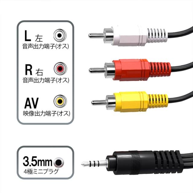 コネクタ形状:黄ーRCA AV出力端子(オス)、赤・白ー音声出力端子(オス)、4極ミニプラグ Ф3.5mm