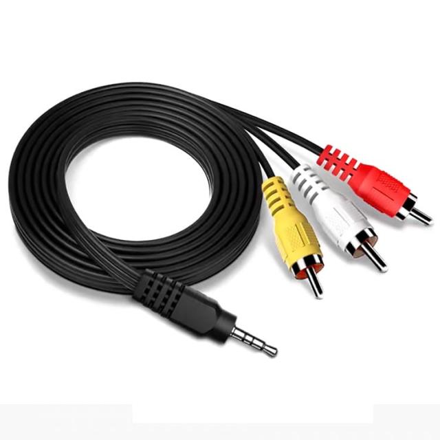 4極ミニプラグからRCA端子(音声2 映像1)に変換できるアダプタケーブル。
