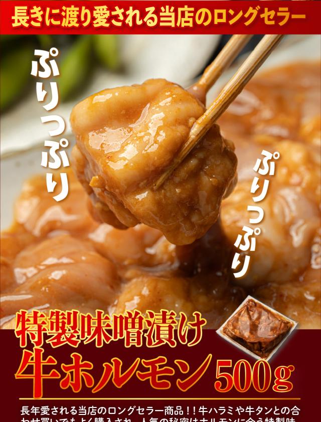 特製味噌だれ漬け 甘旨 牛ホルモン 500g 約2-3人前 食品 肉 焼肉 バーベキュー 食材 ホルモン焼