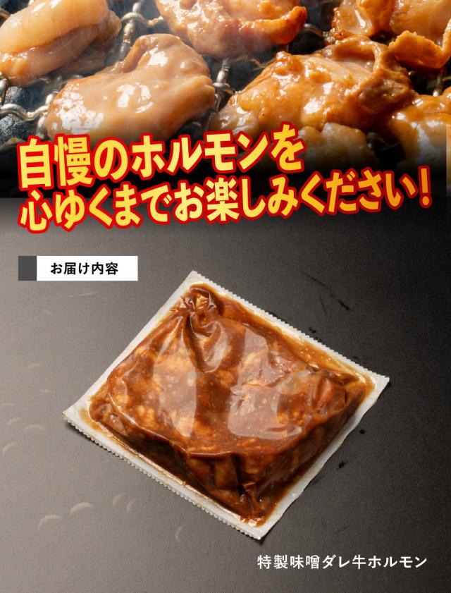 【商品名】:特製味噌だれ漬け 甘旨牛ホルモン 500g 約2-3人前