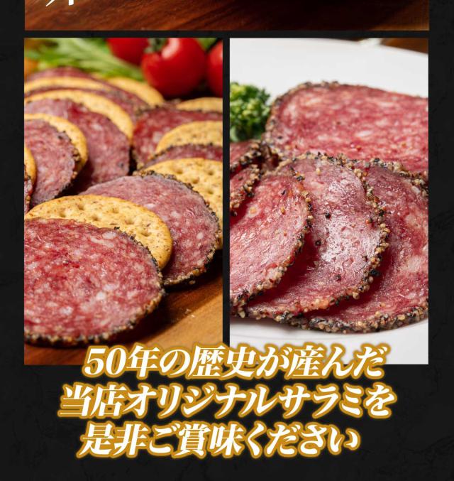 肉一筋50年の歴史が産んだオリジナル八ツ割りサラミを是非ご賞味頂きたい!
